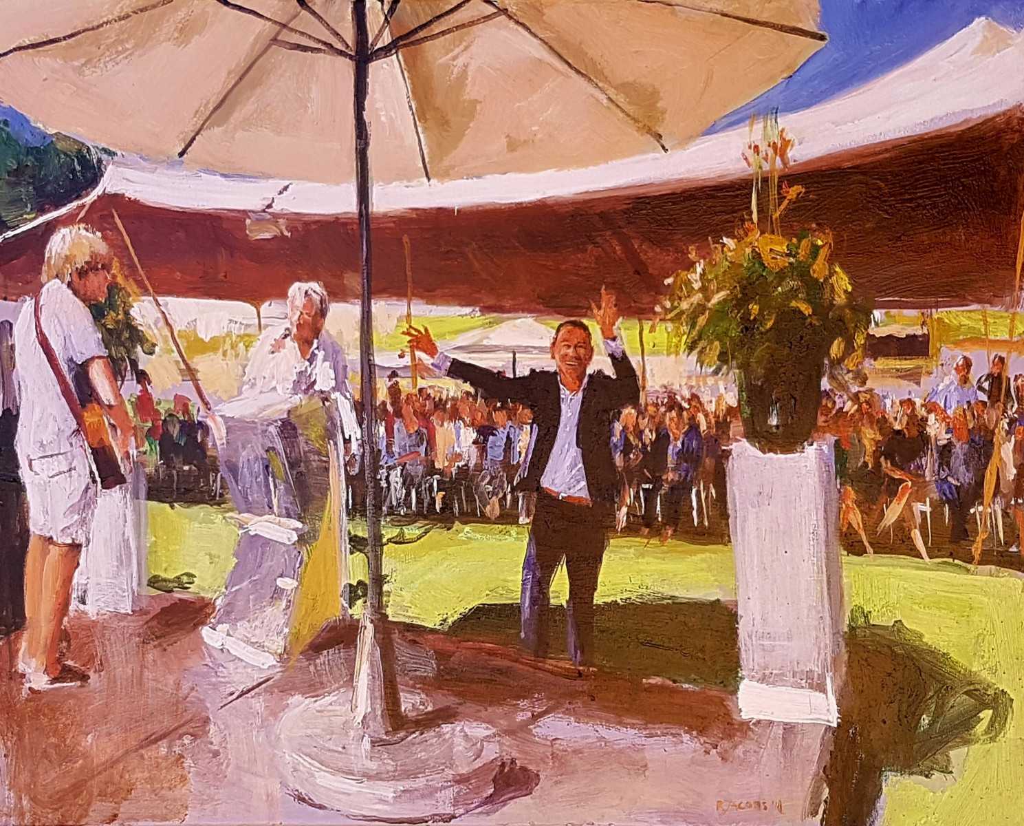 Rob Jacobs schildert doek van 80x100cm tijdens de ceremonie in Venlo, Limburg.