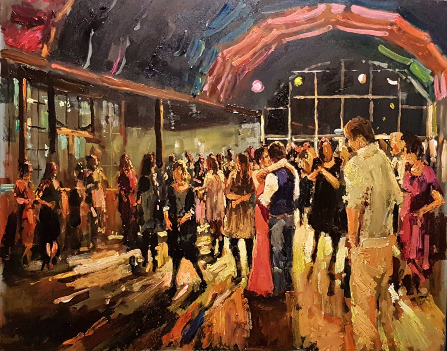 Rob Jacobs schildert doek van 100x80cm, tijdens Gala, in Noord-Holland te Amsterdam.