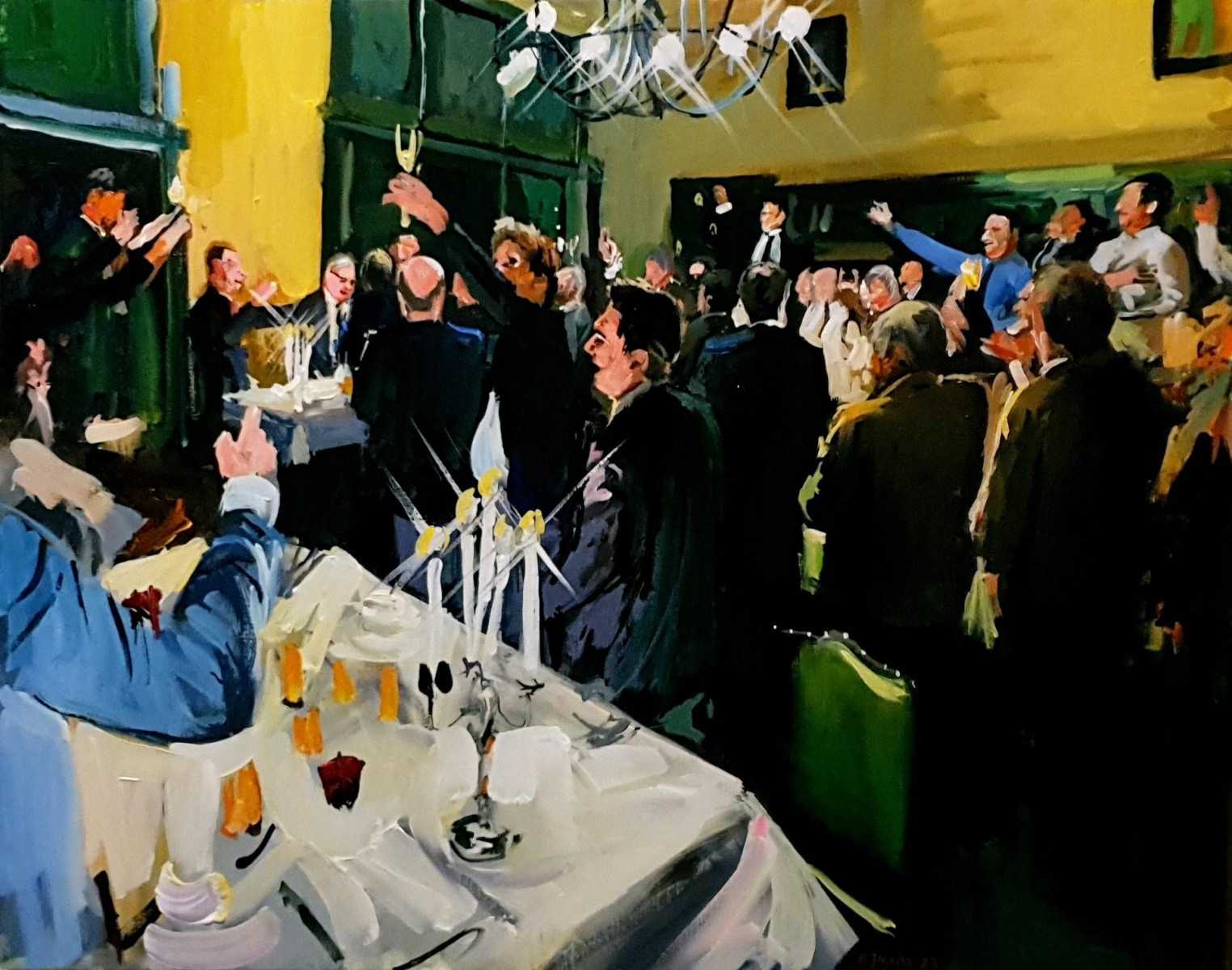 Proost op het leven terwijl Rob Jacobs live schildert tijdens de feestelijke toost in Utrecht, Utrecht.